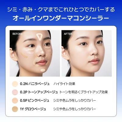 | 0.2N | バニラベージュ | とても明るいベージュ | 目元や口角を明るく見せたい人 |