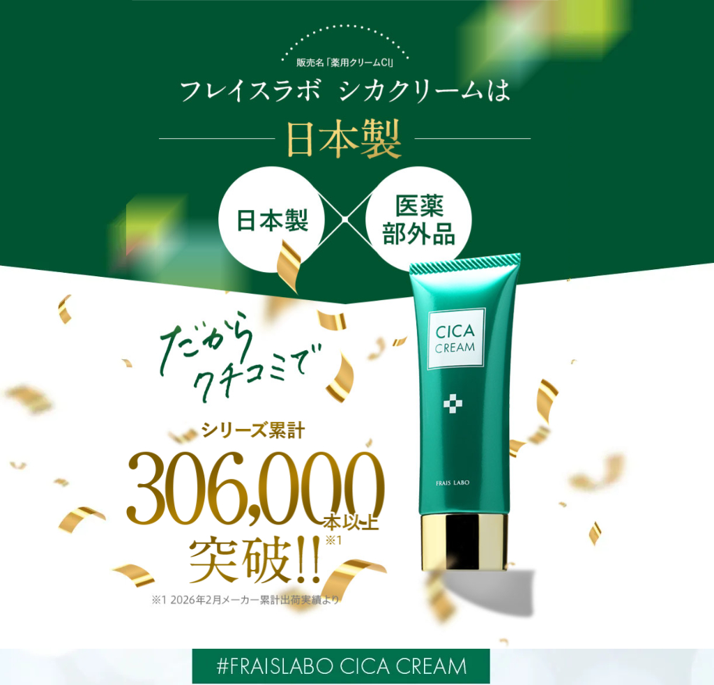なお、フレイスラボ シカクリームは医薬部外品として、抗炎症有効成分 グリチルレチン酸ステアリル配合と説明されています。FRAIS LABO