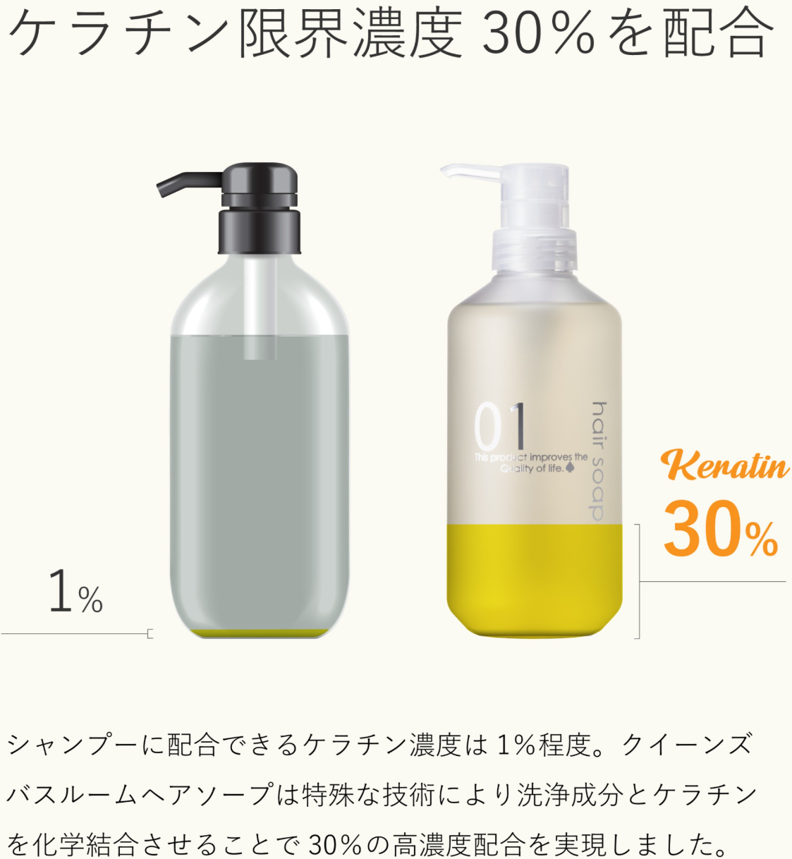 最大の特徴:ケラチン“そのもの”から作った洗浄成分を高濃度に配合